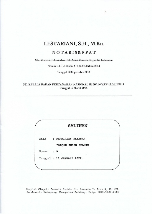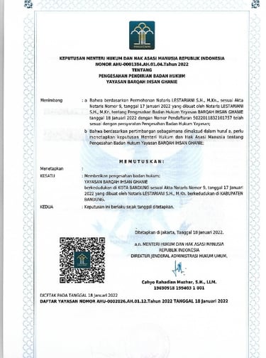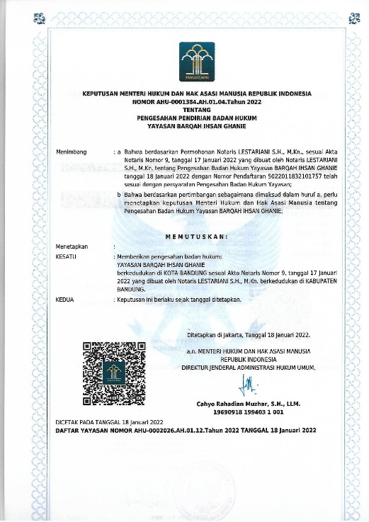 SK Kementrian Hukum & HAM RI Nomor AHU-0001384.AH.01.04.Tahun 2022