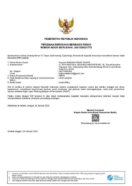 Nomor Induk Berusaha (NIB) . 2401220021775